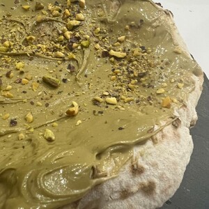 Focaccia con crema e granella di pistacchio
