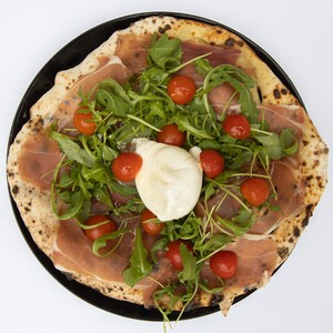 Prosciutto crudo, pomodori datterini, rucola e burrata 125 gr.