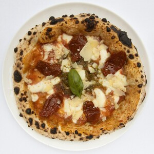 Pomodoro San Marzano, fior di latte, pomodori secchi, pesto di basilico e grana