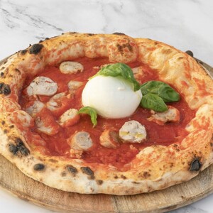 Pomodoro San Marzano, mozzarella di bufala, pomodori datterini, salsiccia, basilico e origano