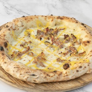 Fior di latte, guanciale croccante, carbocrema, pecorino e pepe